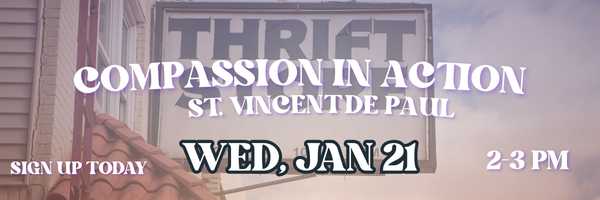 Every 3rd Wednesday of the month, make plans to volunteer with Compassion in Action of The Visible Church at the St. Vincent Thrift Store right down the street from church from 2-3 pm!